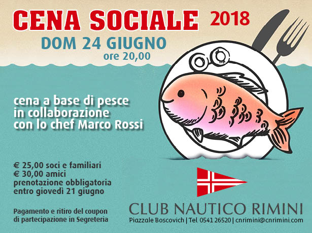 Domenica 24 giugno si terrà, con inizio alle ore 20,00,  la tradizionale Cena Sociale del nostro Sodalizio. Durante la cena si svolgeranno le premiazioni delle competizioni di vela e pesca effettuate nel weekend.