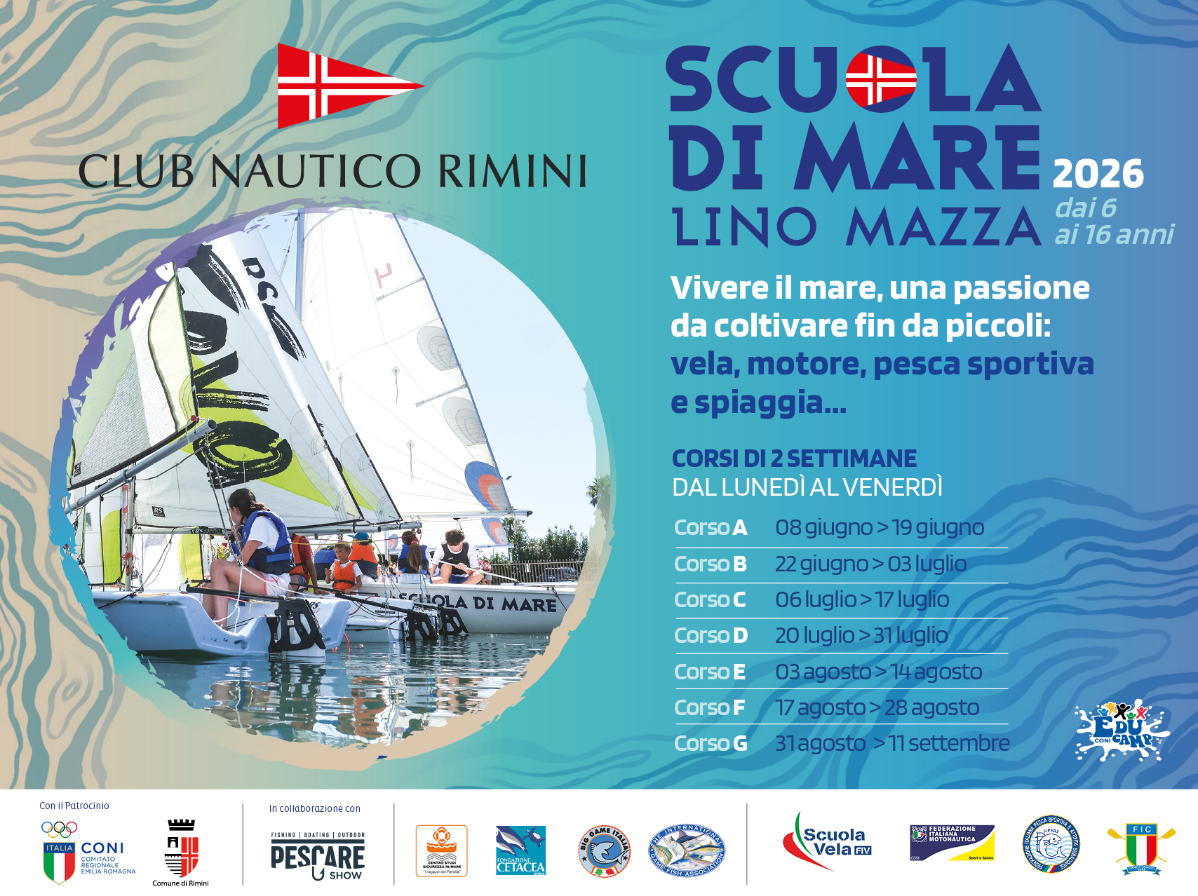 Dal 3 marzo aperte le iscrizioni ai corsi della Scuola di Mare “Lino Mazza” 2026, direttamente sul sito del Club Nautico Rimini, con eventuali ulteriori informazioni da richiedere alla segreteria del Club.