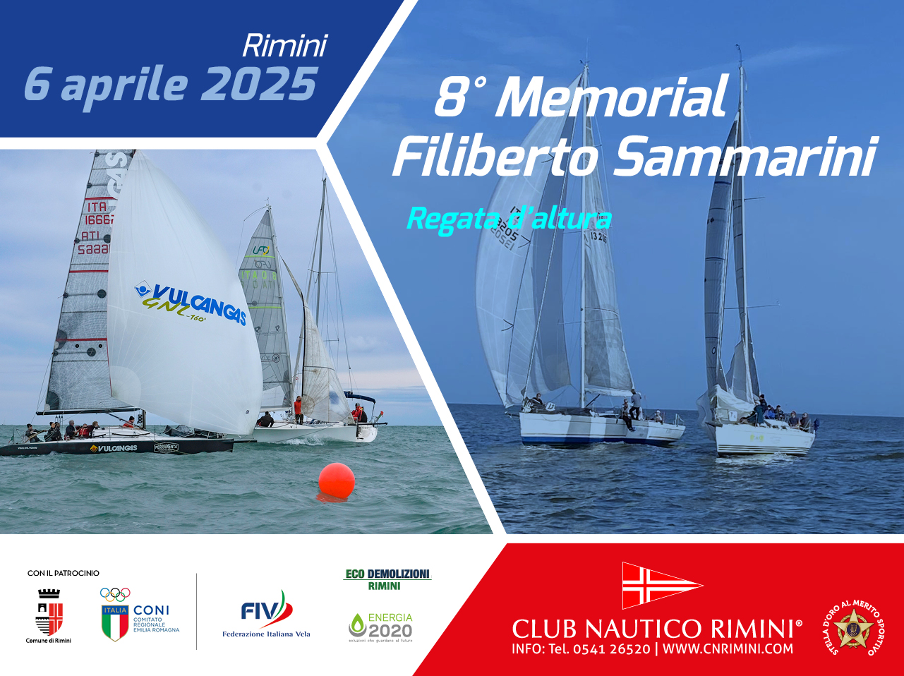 Per info ed iscrizioni contattare la segreteria del Club Nautico Rimini 0541 26520 o inviare una mail all’indirizzo cnrimini@cnrimini.com.